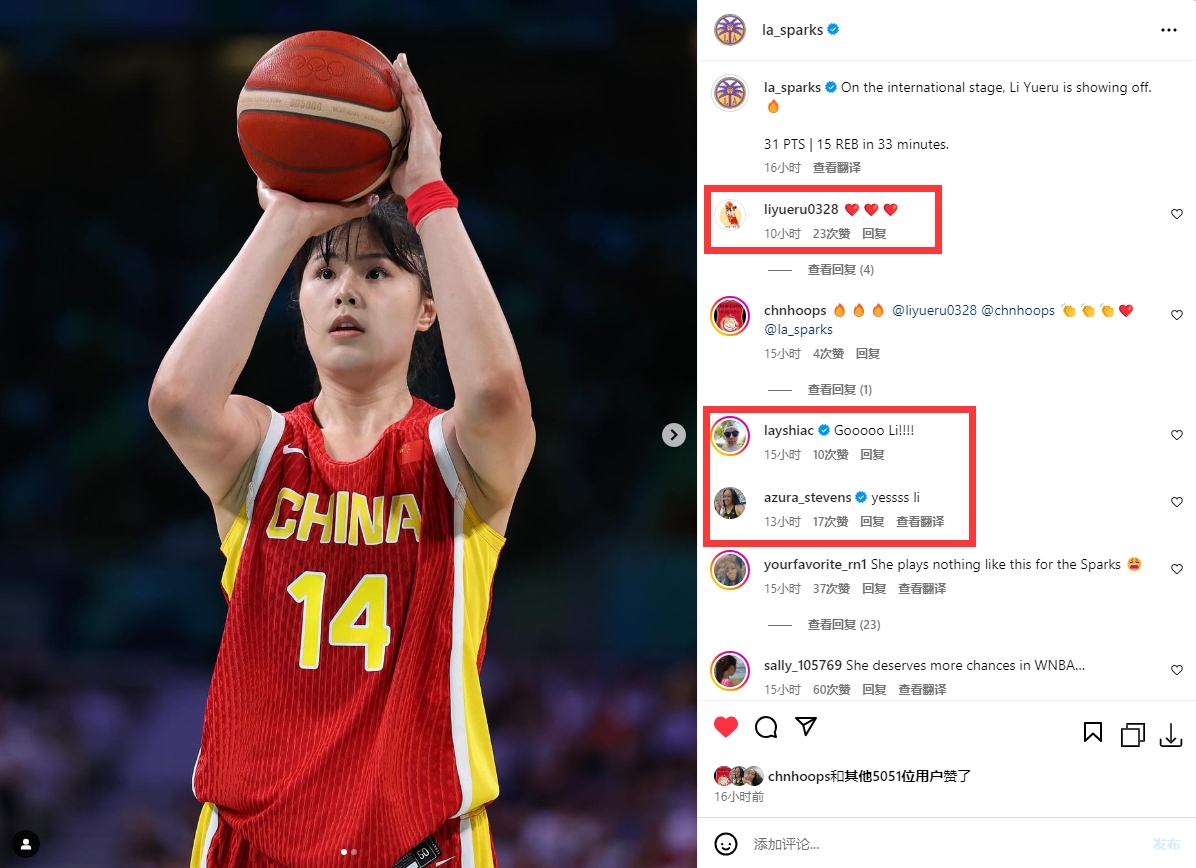 当天李月汝在WNBA服从的球队洛杉矶火花,在社媒发布动态,为李月汝这场比赛的进展点赞:“李月汝正在国外赛场引东说念主扫视🔥出场33分钟拿到31分15篮板。”