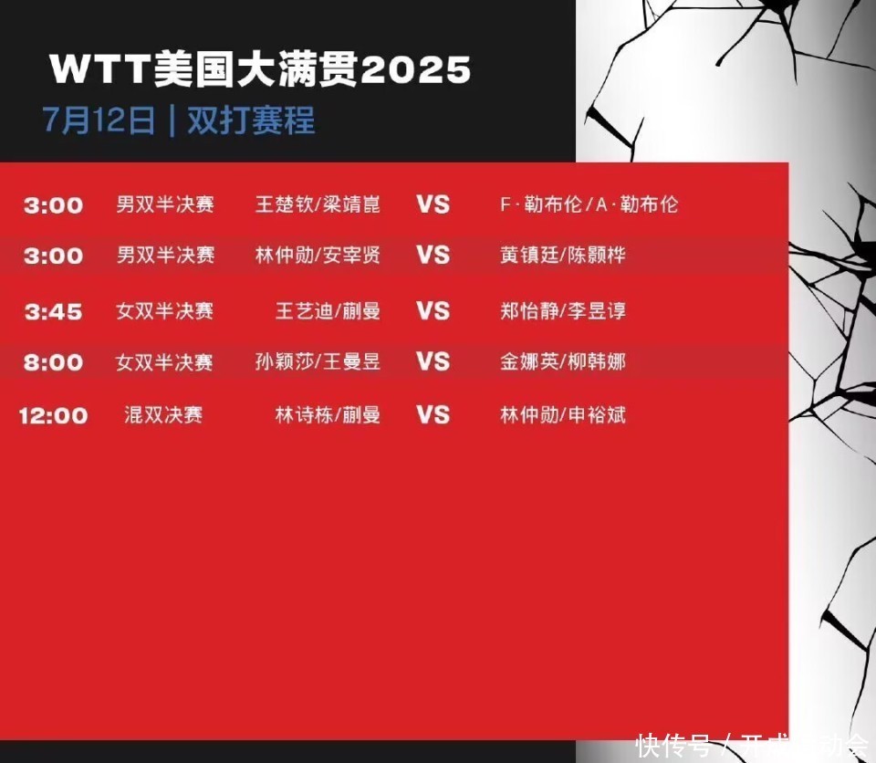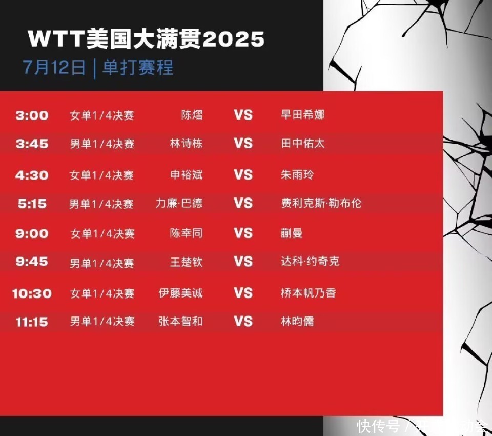 WTT好意思国大满贯2025年7月12日全日国乒赛程簇新出炉,咪咕体育直播, 央视遴荐性直播!
